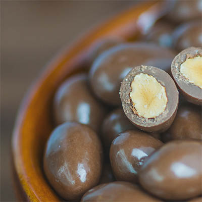 Dark chocolate coated almonds are made with lush, semi- sweet dark chocolate and whole, dry-roasted almonds. The end result is a light yet rich flavor: perfect for summertime desserts like biscuits or pancakes, coffee ice cream bites (such as this Chocolate Cupcake), cakes or pastries.